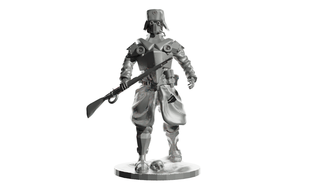 The idea is that the war is not over, in the yard of 2060. The world is defined by war, economies are working on wear and tear, science and technology are aimed at developing armaments. Genomodifications, implants, implantation of various equipment, used to increase the power and survivability of military and civilian. This is the first model in a series of models The war is not over infantry in the USSR. Strong armor, modified legs, optics implanted in the eyes, firing a mosin rifle. The multi-backpack allows you to do jet jumps, saves extra power for the modules, and there are nutrients that provide food for a week at full capacity. This is one of the simplest infantry modifications of the USSR. USSR Red Army infantry 3D Model